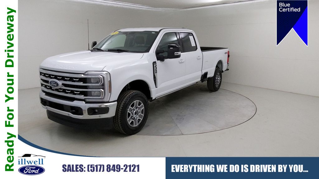This 2024 Ford F-350 LARIAT Crew Cab 4×4 doesn’t posture. Finished in Oxford White, it wears its capability honestly the kind of truck that looks just as natural rolling out of Hillsdale before sunrise as it does easing through Jonesville traffic or stretching out along US-12 with a trailer firmly in Tow.